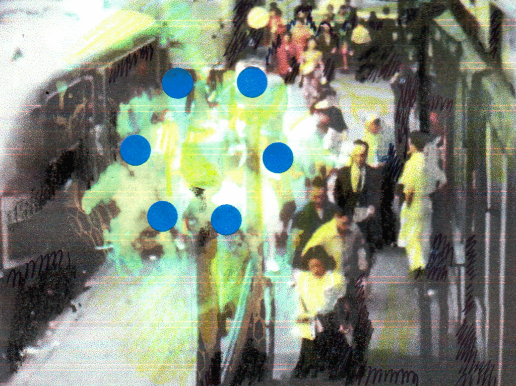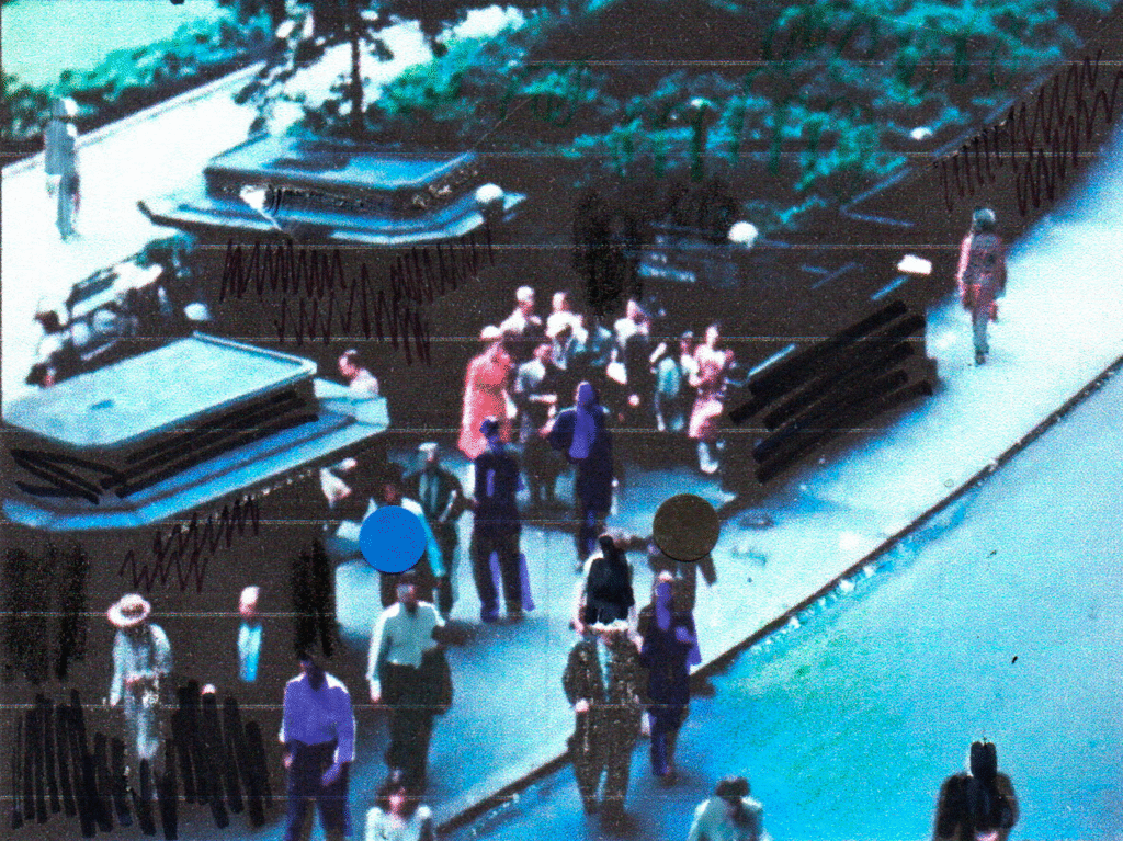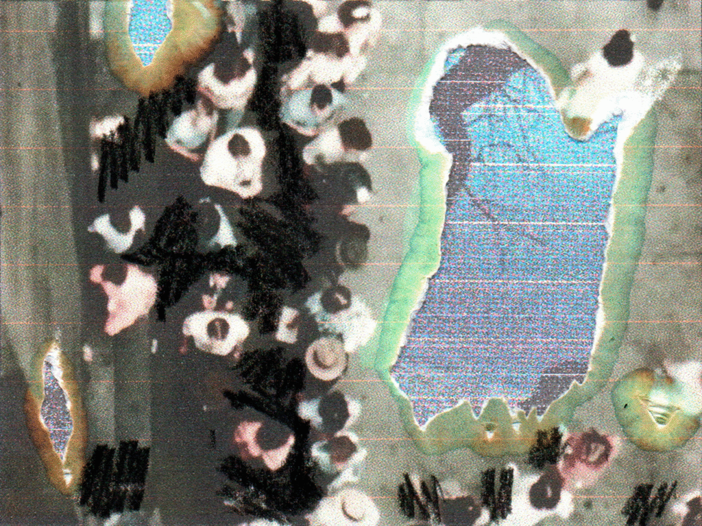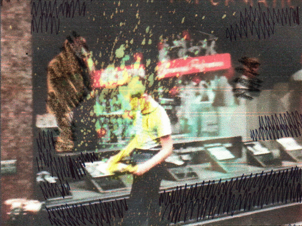 Animação em mídias mistas que explora diferentes efeitos de edição manual em frames impressos.