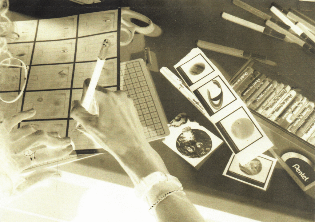 A animação em stop motion atravessa todo o processo: pensar as imagens como sequência é fundamental para a construção de movimento. A partir disso, cada participante define e testa os efeitos que deseja explorar, em diálogo com o tema do seu projeto. Entre desafios técnicos e bloqueios criativos, o trabalho se desenvolve no enfrentamento direto com o papel, a ideia e o tempo — em uma duração concentrada de 4 a 6 horas.